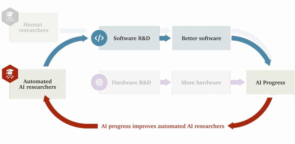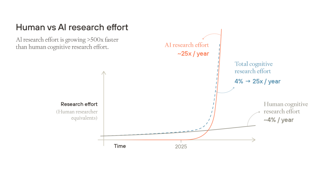 Next, imagine that AI continues to improve, and eventually these models start to do the work of even top researchers, with minimal human direction.